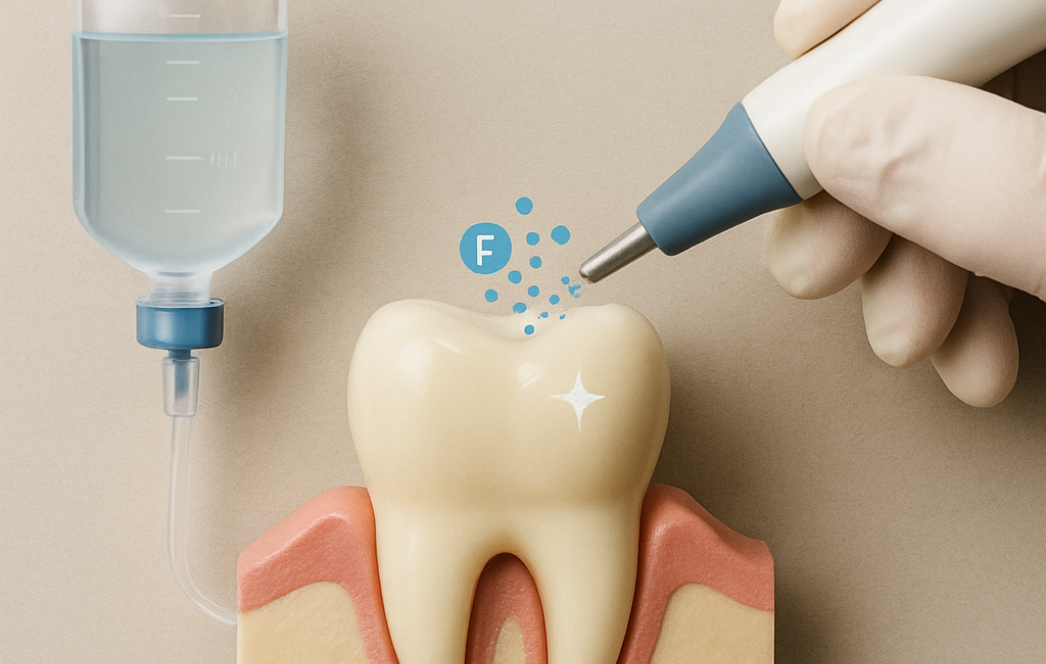 フッ素を分子レベルで歯の内部へ浸透させて再石灰化を促す「歯科クリニックのみ」の予防法を行なっております。知覚過敏にも効果があるとされており、施術直後から「うがい」も「飲食」も可能です。
